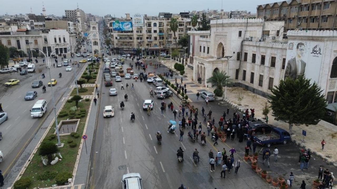 Suriye'de muhalif grupların Esad rejiminden aldığı Hama'da, zafer sevinci kent meydanında yaşandı. Suriyelilerin kutlamaları dron ile görüntülendi.