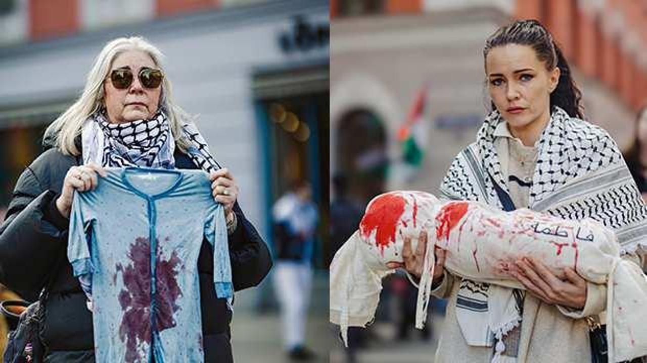 Gazze'deki çocuk ölümlerine dikkat çekmek için kanlı küçük kefenlerle yürüyüş yapan Norveçliler, soğuk ve kötü hava koşullarına rağmen yürüyüşe yoğun ilgi gösterdi.