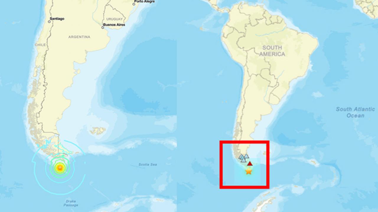 Amerika Birleşik Devletleri Jeoloji Araştırmaları Kurumu (USGS), Şili-Arjantin sınırının 219 km açıklarında 10 km derinlikte 7,4 ve 7,1 büyüklüğünde iki deprem meydana geldiğini açıkladı.