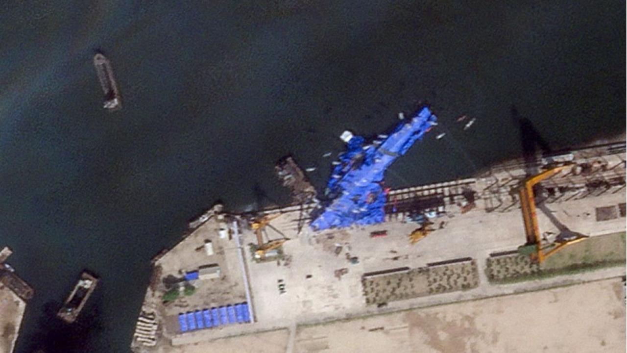 Olayın ardından uydudan çekilen görüntülerde, kısmen mavi bir branda ile kapatılmak istenen savaş gemisinin yan yattığı, bir kısmının karada, bir kısmının ise suda olduğu görülmüştü.
