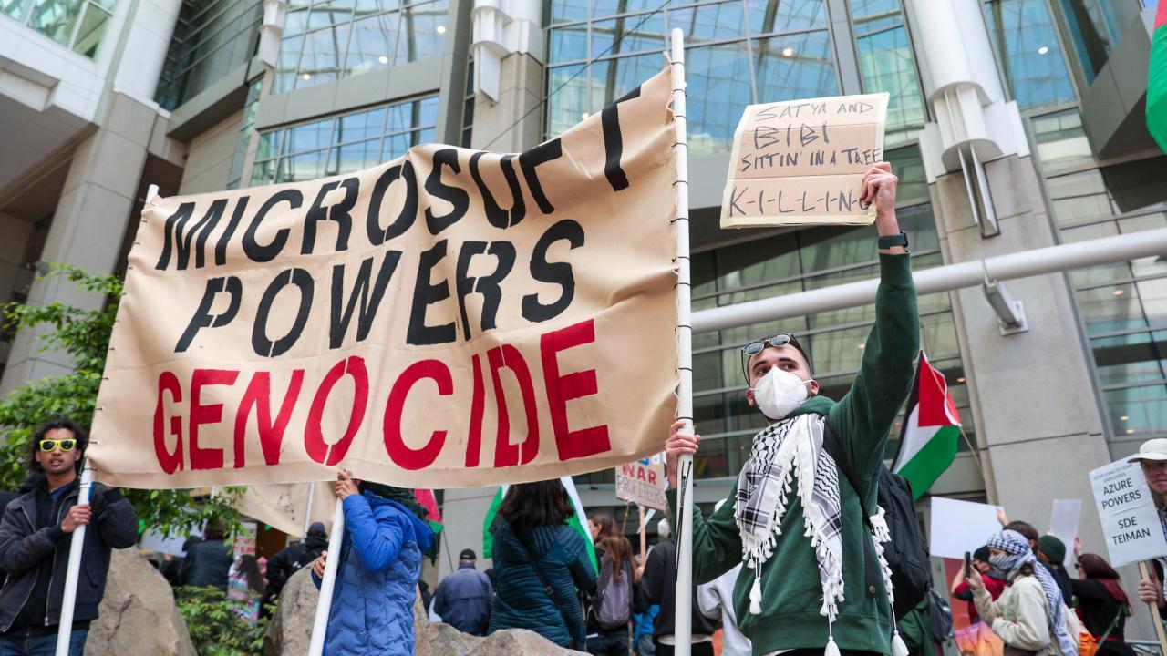 ABD merkezli teknoloji devi Microsoft'un çalışanları ve aktivistler, soykırımcı İsrail ordusuyla iş birliği yaptığı gerekçesiyle şirketin Washington eyaletindeki genel merkezinin önünde eylem yaptı.