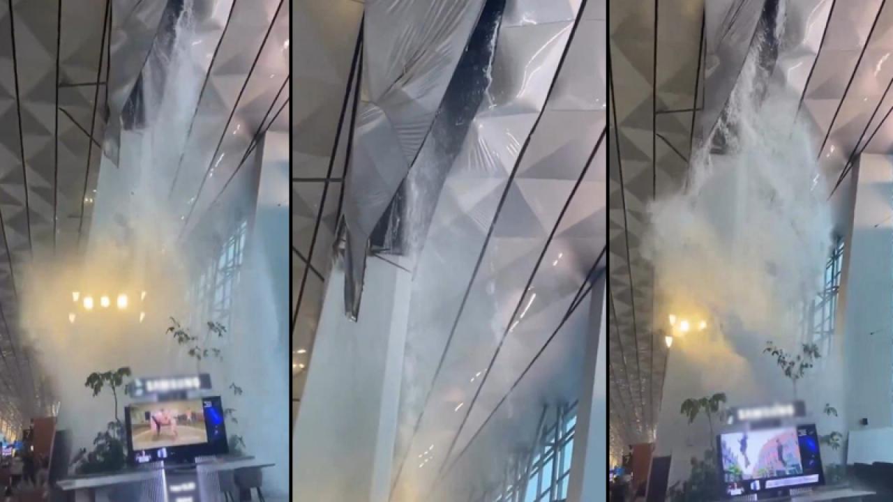 Şiddetli yağış yüzünden havalimanı çatısı çöktü