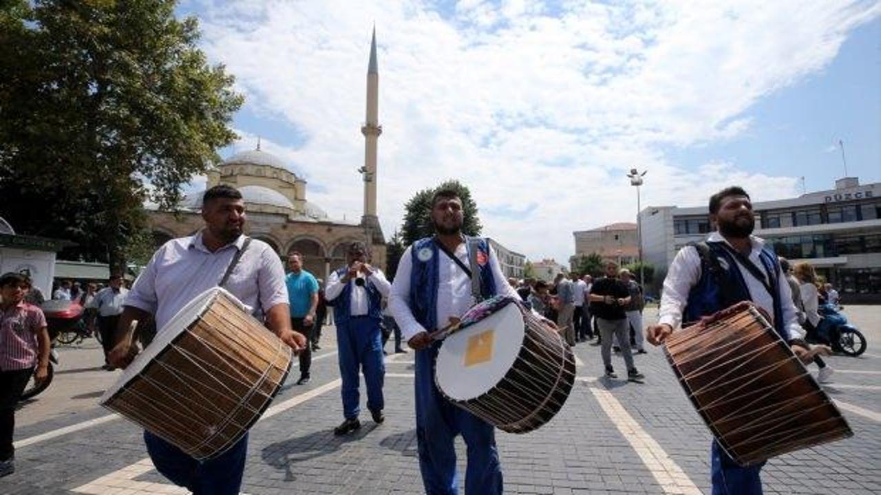 Belediye Meydanında toplanan güreşçiler, davul-zurna eşliğinde Anıtpark Meydanına kadar yürüyerek ellerindeki mumdan yapılan davetiyeleri vatandaşlara verdi.