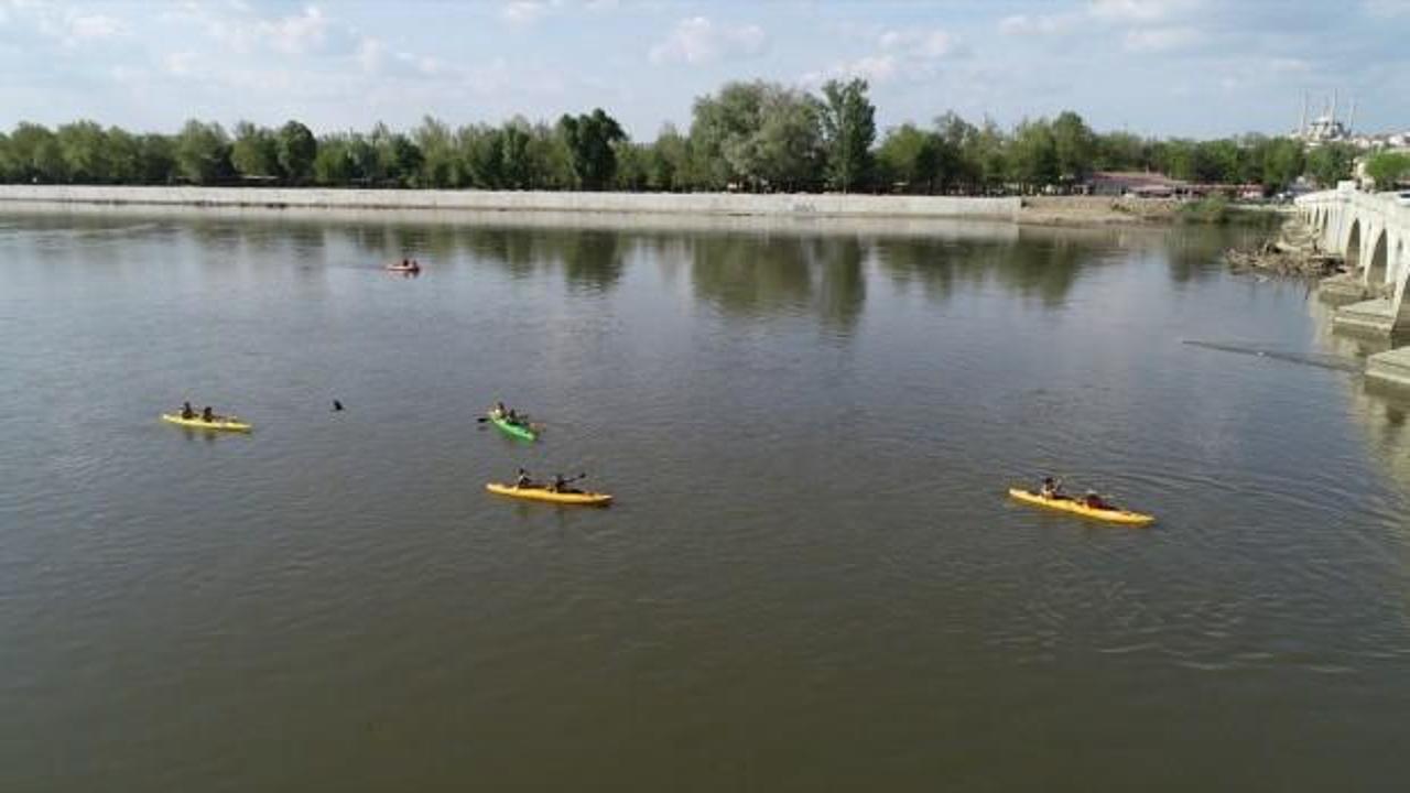 Edirne Doğa Sporları Kulübü Derneği'nin (EDOSK) kano ekibi, "Turizm Haftası" etkinlikleri kapsamında, Tunca ve Meriç nehirlerinde 10 kilometre kürek çekti.