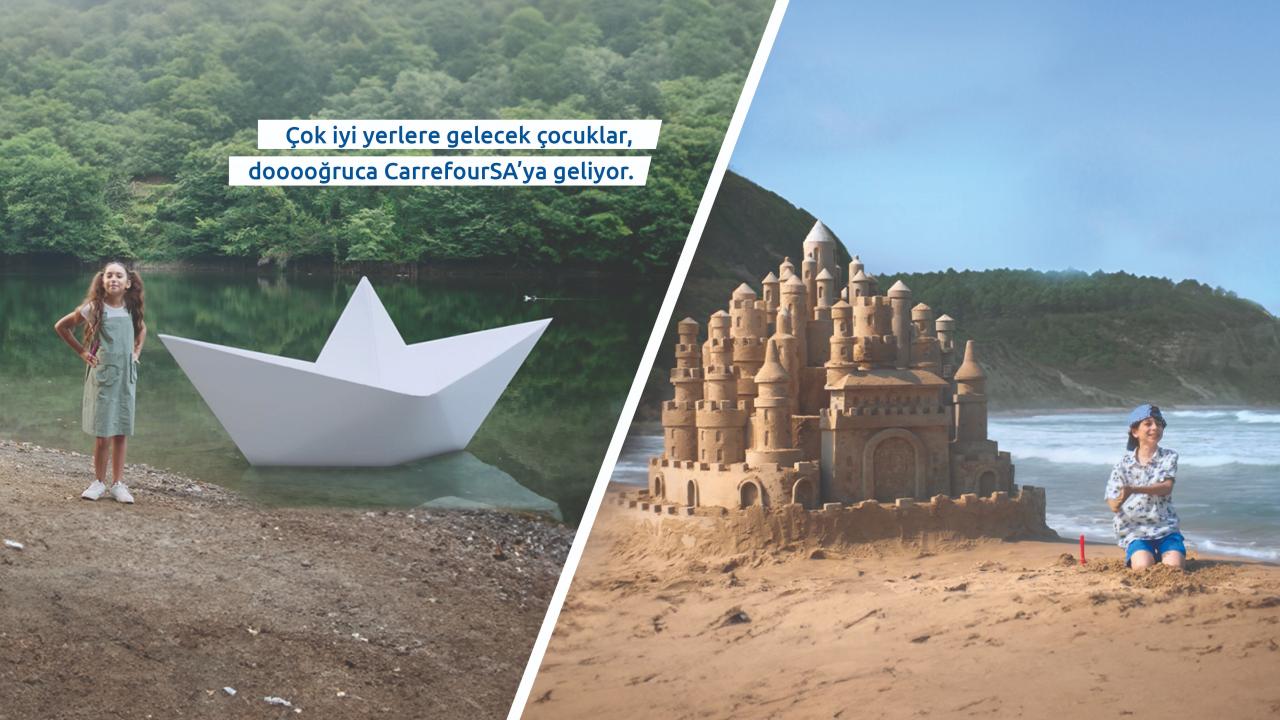 Bir plajda devasa bir kumdan kale yapan bir çocuğun, annesinin gözünde tıpkı bir mimar gibi görülmesiyle başlayan ilk reklam filmi CarrefourSA mağazasındaki kırtasiye reyonlarında devam ediyor. Çocuğundaki yeteneği keşfeden annenin pergellerden cetvellere, çizim kalemlerinden defterlere, silgilerden çantalara kadar ihtiyacı olan tüm ürünleri CarrefourSA’da bulabildiği vurgulanan reklam filminde “Okula başlayan tüm çocuklarımız için tam 30 yıldır doğrusu CarrefourSA’da!” mesajı veriliyor.