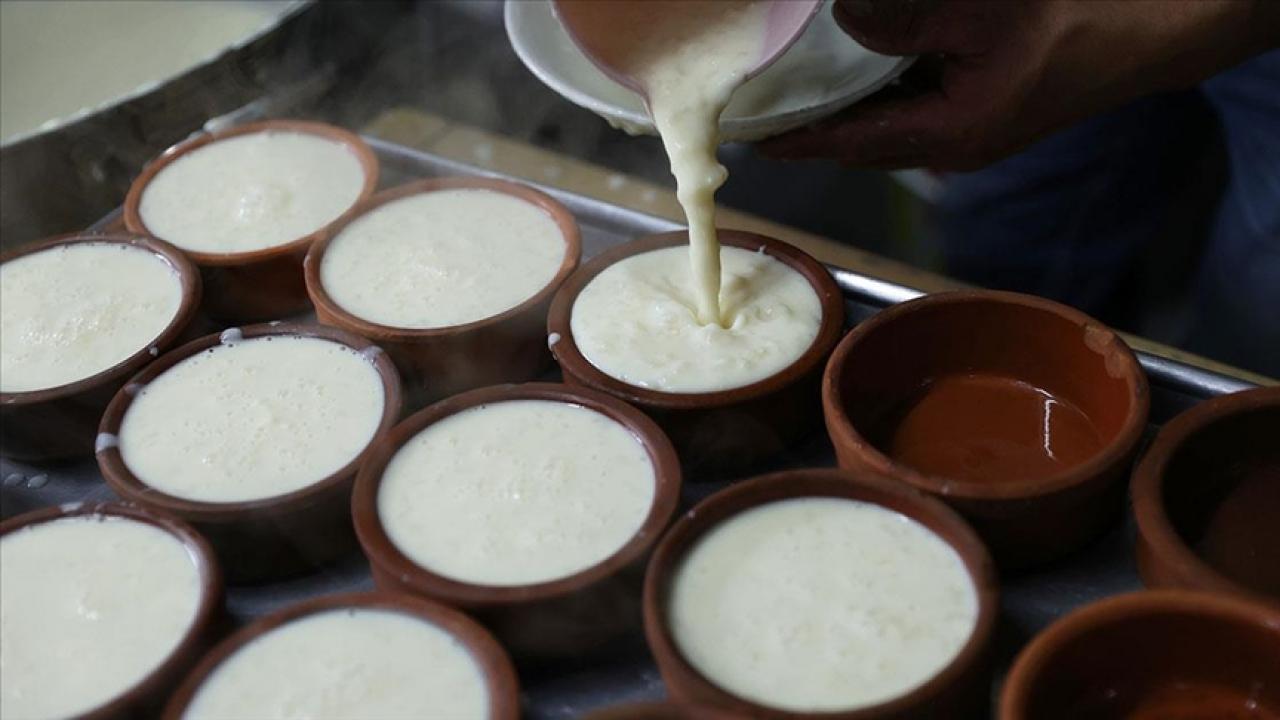"Sütümüzü kaynatıyoruz. Kaynadıktan sonra tabii sütün miktarına göre pirincini ilave ediyoruz. Sütü pirinçle beraber pişiriyoruz. Süt kıvamını aldığı zaman onu tabi ki ustamız görebiliyor. Onu herkesin görme şansı yok. 100 kilo süt yaklaşık 1 saat süreyle pişiyor. Suyu buharlaştırıyor. Ondan sonra şekerini ilave edip 10-15 dakika karıştırdıktan sonra kaseye koyup kızartmaya başlıyoruz."