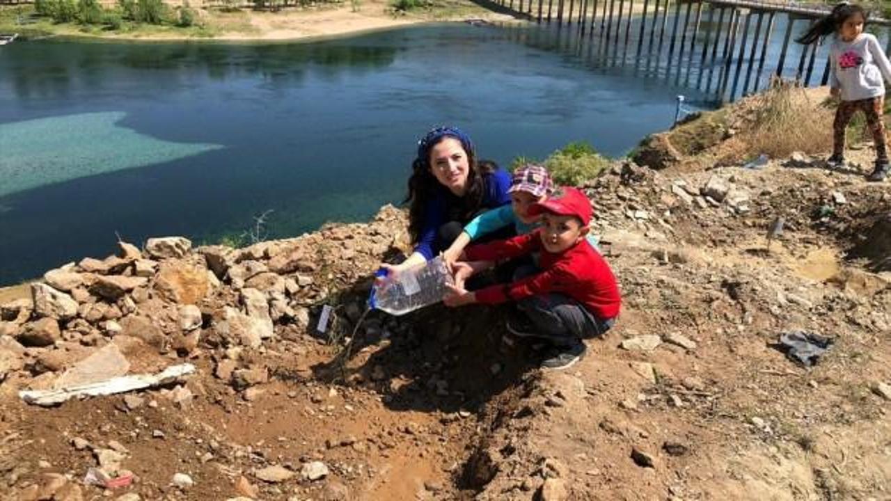 Keban’da anasınıfı öğrencileri Fırat Nehri kıyısında fidan dikti.