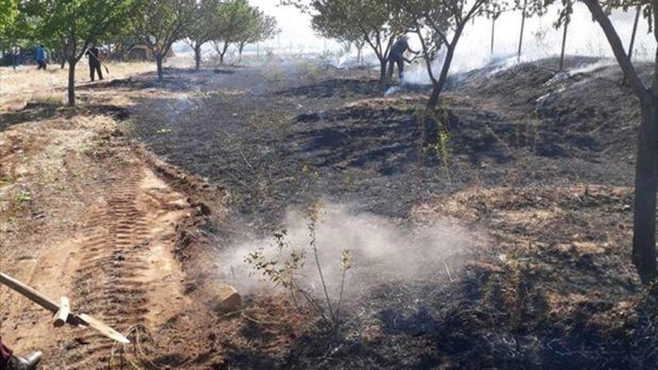 Şefkat Mahallesi'nde Kazım Bilen'e ait kayısı bahçesinde, ilk belirlemelere göre elektrik direğindeki kıvılcımın bahçeye düşmesinden dolayı yangın çıktı.