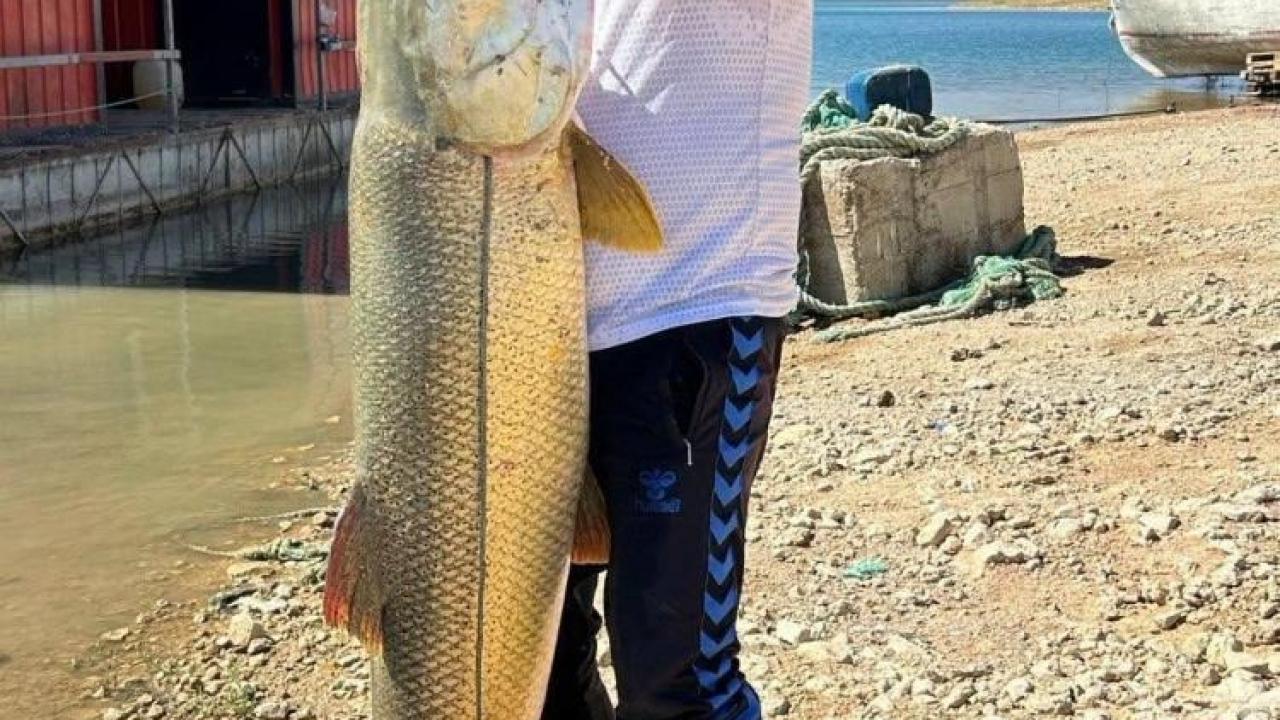 Elazığ’da 3 arkadaş balık tutmak için Fırat Nehri Keban Baraj Gölüne açıldı. Bir süre nehirde avlanan vatandaşların oltasına devasa bir balık takıldı.