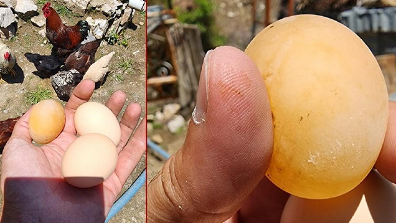 Alınan bilgiye göre, sabah yumurta almak için kümese giden vatandaş, yumurtaları toplarken, bir yumurtanın diğerlerinden daha farklı olduğuna şahit oldu.
