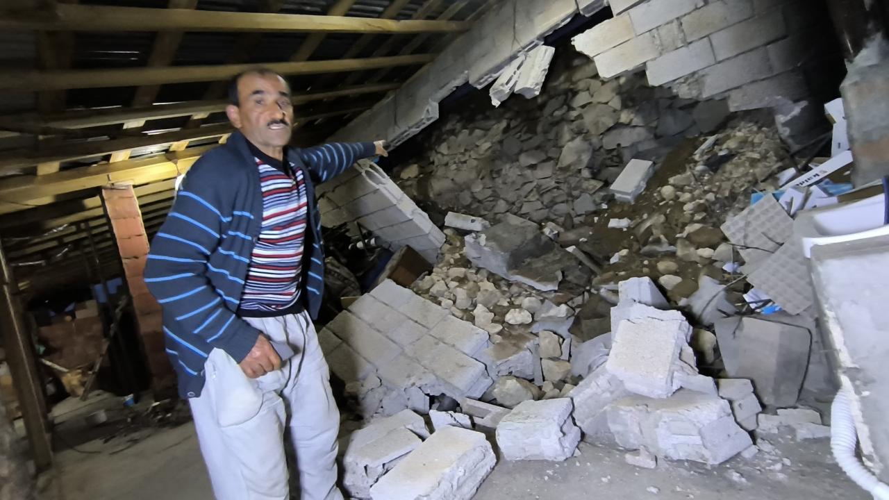 Çatı katından içeri giren kaya parçaları, evin tuğla ve briket duvarlarını yıkarak hasara yol açtı. Kaya parçalarının yıktığı evin tavanının delinmesine ise ramak kaldı.