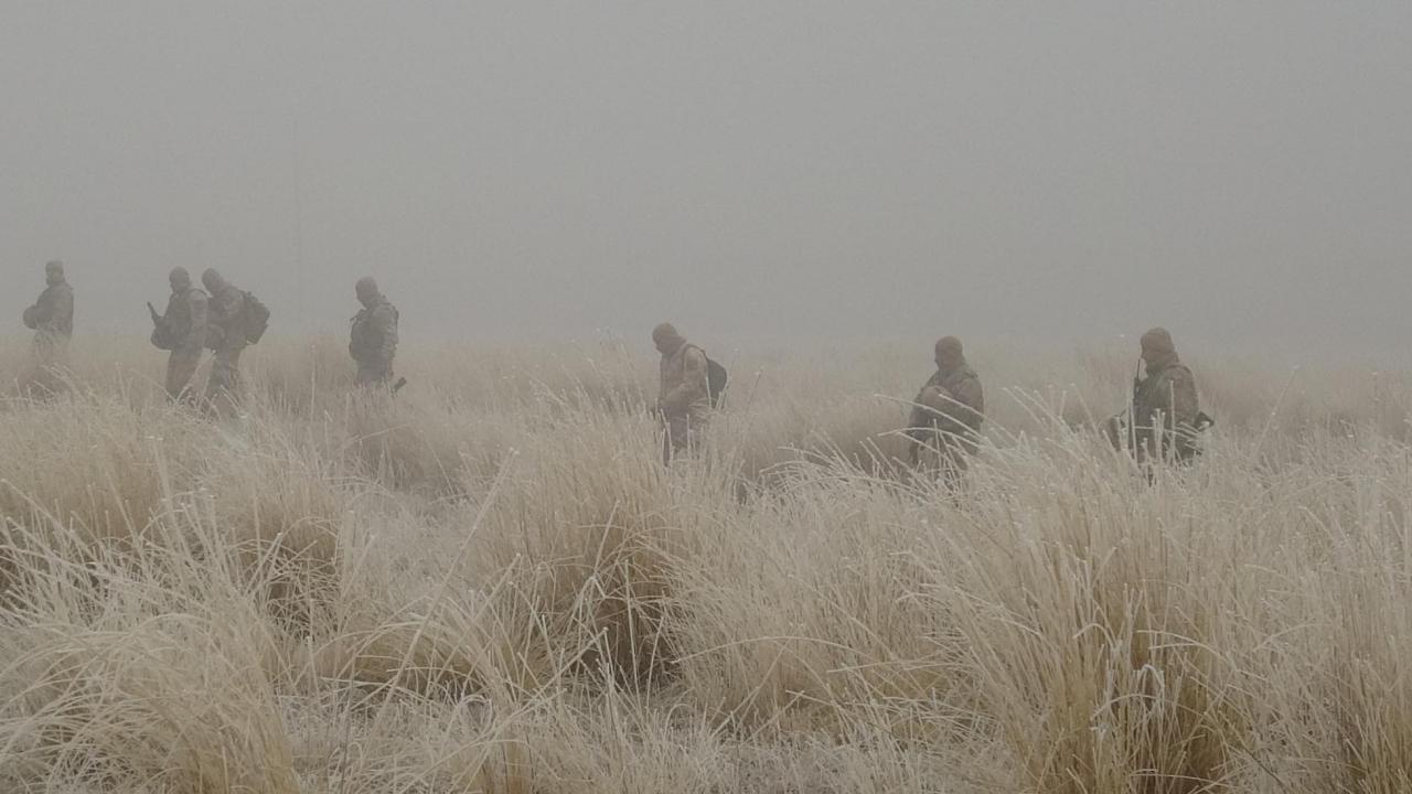 Jandarma iz takip köpeği Tapan'ın da kullanıldığı arama çalışmaları yoğun sis altında devam ediyor.