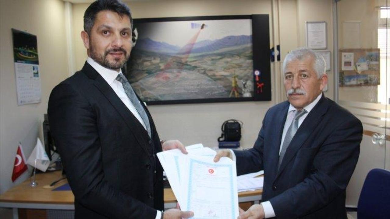 ABONE OLYeniköy Mahallesi'nde altyapı proje ihalesi gerçekleştirilen OSB için 91 tapu senedi törenle Tapu Müdürü Feyzi Budak tarafından Belediye Başkanı Hamid Yüzügüllü'ye verildi.