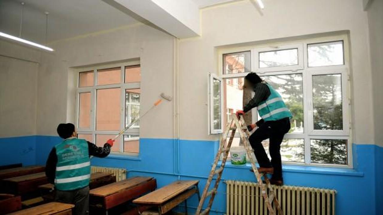 Denetimli serbestlik yükümlüleri yarıyıl tatilinde okulları boyuyor