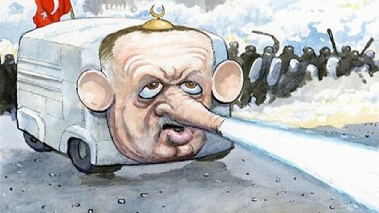 Karikatürde, Gezi Parkı direnişi konu edilirken, polisin aşırı şiddet göstermesi eleştirildi.