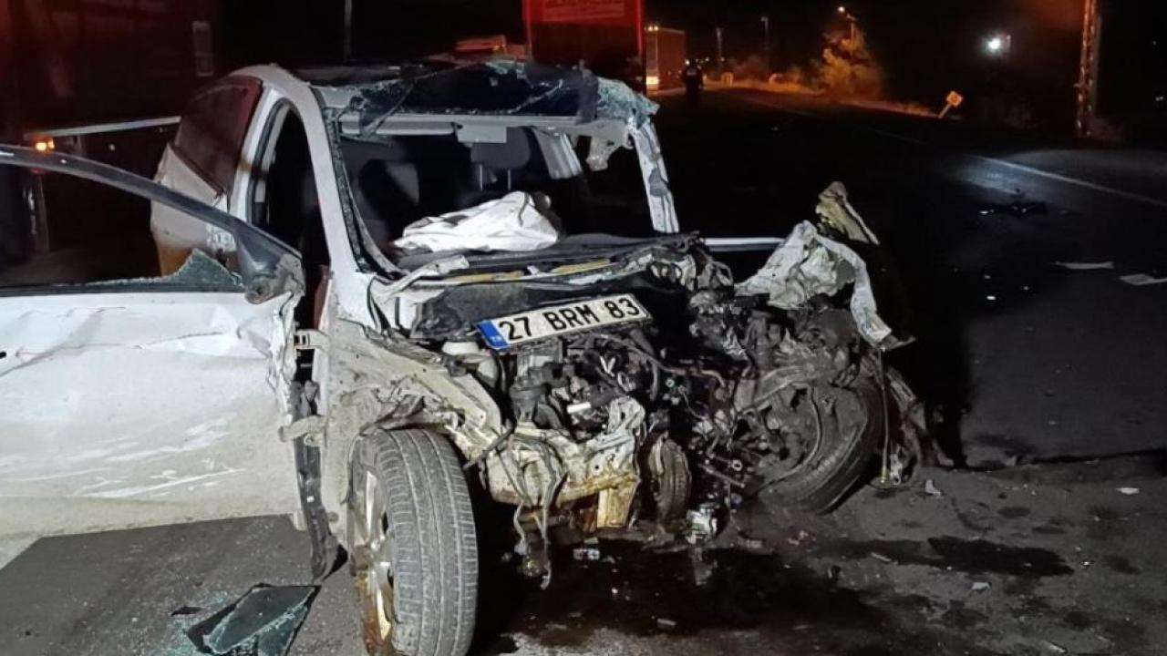 Gaziantep İslahiye'de lastiği patladıktan sonra karşı şeride uçarak tırla kafa kafaya çarpışan otomobilin sürücüsü hayatını kaybederken, ağabeyi ise yaralandı.