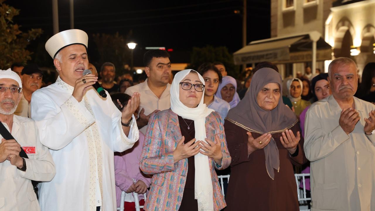 Perihan Kıymık Camii bahçesinde gerçekleştirilen etkinlikte, kutsal topraklara gidecek 300 kişilik kafile için Kur’an-ı Kerim tilaveti yapıldı, dualar edildi.