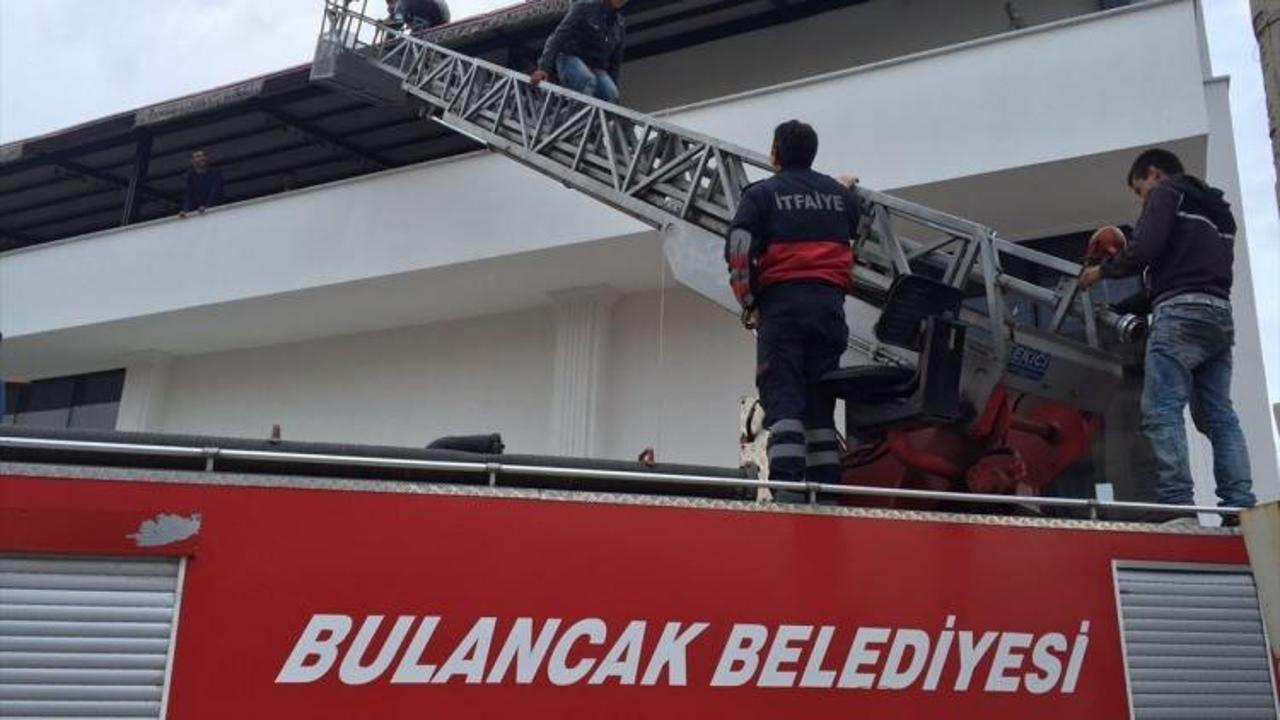 Çatıda mahsur kalan dört usta, Bulancak Belediyesine bağlı itfaiye ekiplerinden yardım istedi. Olay yerine gelen ekipler, ustaları merdiven yardımıyla çatıdan indirdi.