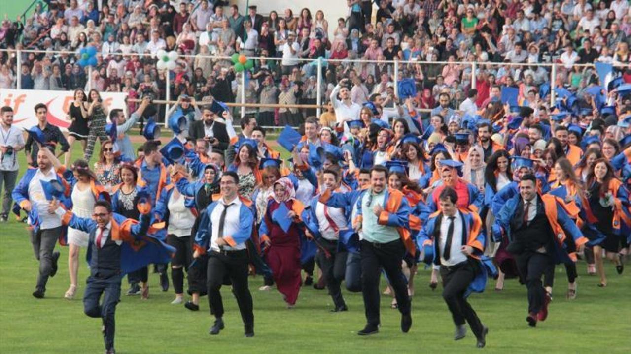 ABONE OLAtatürk Stadyumunda düzenlenen törende öğrenciler bayrak yürüyüşü yaptı, ardından ise kep atarak mezuniyetlerini kutladı.