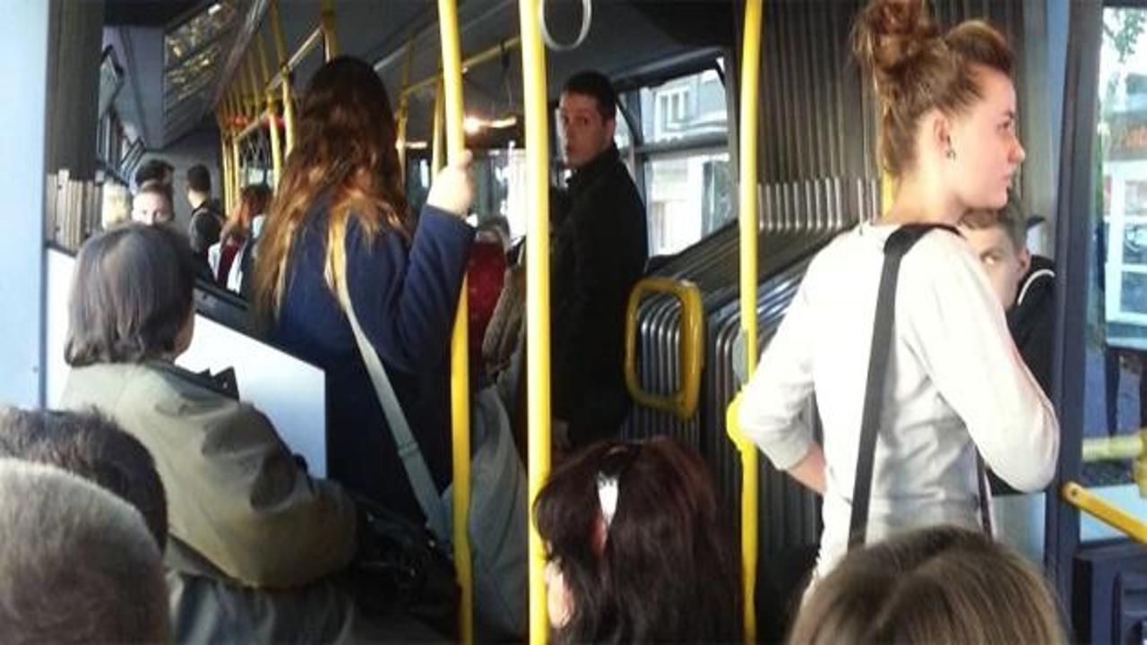 Başkentte otobüste yanında oturan kadının fotoğrafını "selfie" yapmak için çeken kişi, durumu fark eden ayaktaki koca tarafından darbedildi.