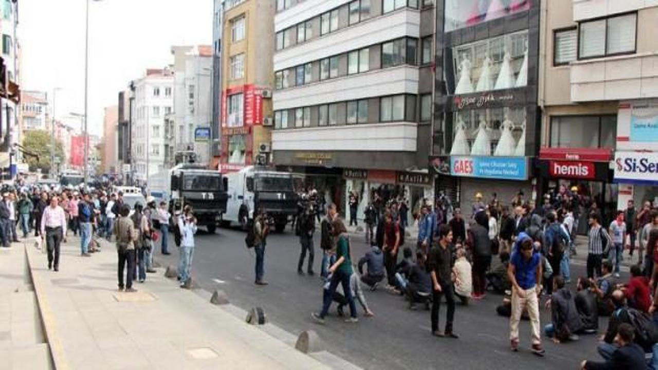Aralarında HDP ve Kaldıraç'ın da bulunduğu çeşitli sivil toplum kuruluşu üyeleri yaklaşık 500 kişi saat 13.00'te Kadıköy Boğa Heykeli önünde toplandı. "Diren Kobani, Kadıköy seninle" ve "Kobani onurdur onuruna sahip çık" şeklinde slogan attı. Grup, Söğütlüçeşme Caddesi üzerinde oturma eylemi ve saygı duruşunda bulunduktan sonra Kadıköy AK Parti İlçe Başkanlığı'na doğru yürümek istedi. Ancak emniyet yetkilileri yasal olmadığı gerekçesiyle yürüyüşe izin vermedi. Yürümekte ısrar eden gruba çevik kuvvet polisi biber gazı ve tazyikli suyla müdahalede bulundu. Ara sokaklara dağılan gruptan polise taş atarak karşılık verenler oldu. Polisin gazlı müdahalesi sırasında birçok vatandaş etkilendi. Vatandaşlar çevredeki işyerlerine sığındığı görüldü. Bir kadının ise yaşanan panik sırasında gözyaşları içinde kızını aradı.