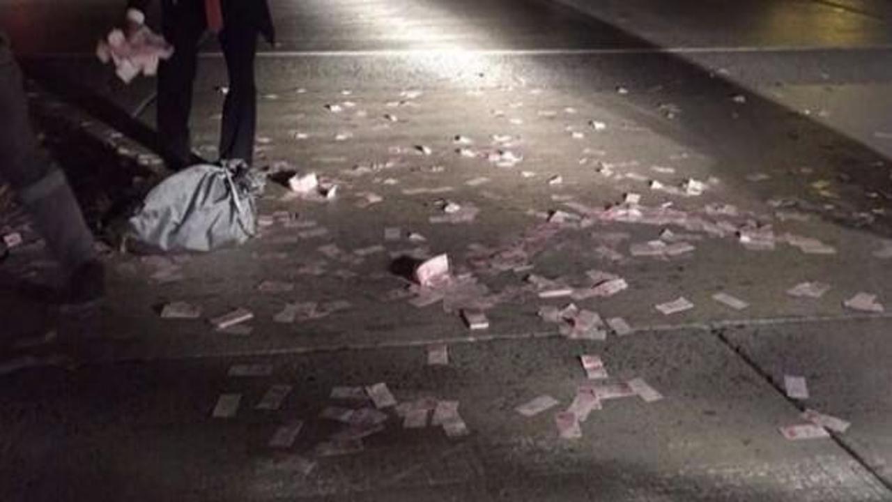 Para torbasının patlamasıyla birlikte içindeki binlerce TL apronun zeminine, uçak park yerlerini arasına saçıldı. Rüzgarın etkisiyle balya halinde bağlı olan kağıt paralar geniş bir alana yayıldı.