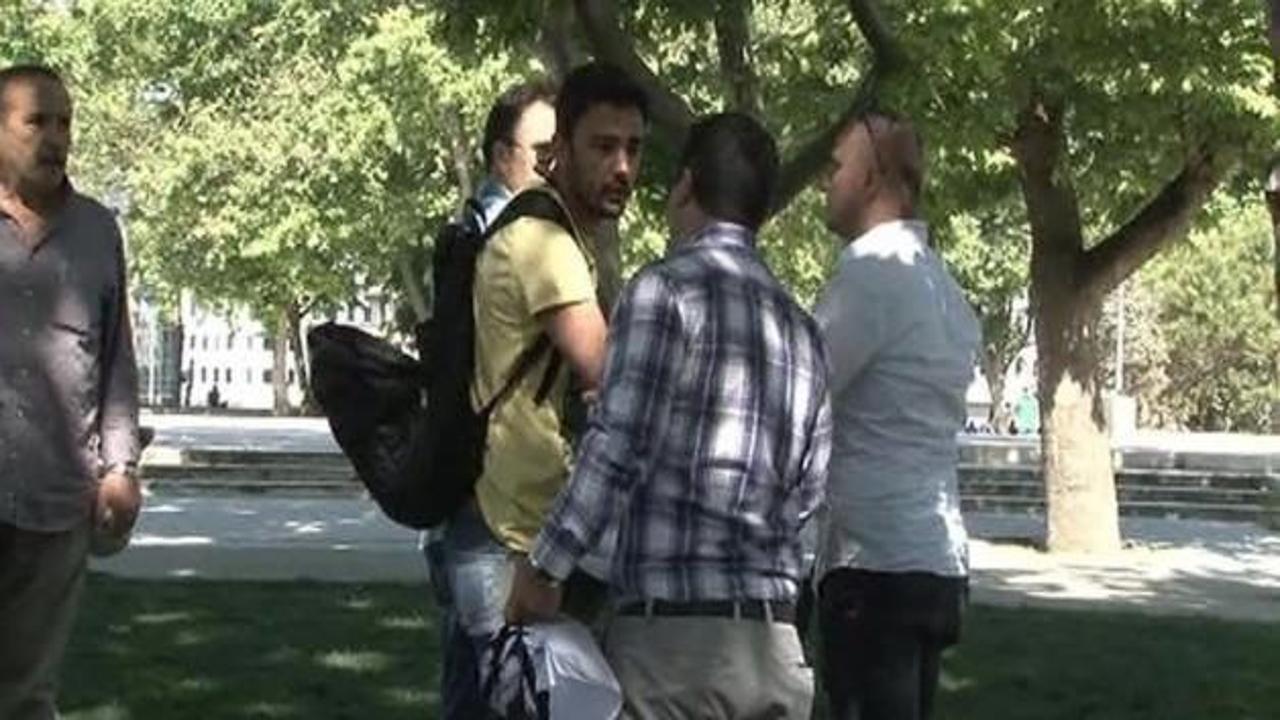 ABONE OLGezi Parkı olaylarının ikinci yıldönümünde, Gezi Parkı'nda cep telefonuyla fotoğraf çeken gazeteci, gözaltına alındı. Gazetecinin "Adını söyle bana. Sana o tekmenin hesabını soracağım" dediği polis "Zaman gazeteci beni neden tehdit ediyorsun. Amerika'ya mı söyleyeceksin, Fethullah Gülen'e mi söylettireceksin. O mu sürecek beni?" yanıtını verdi.