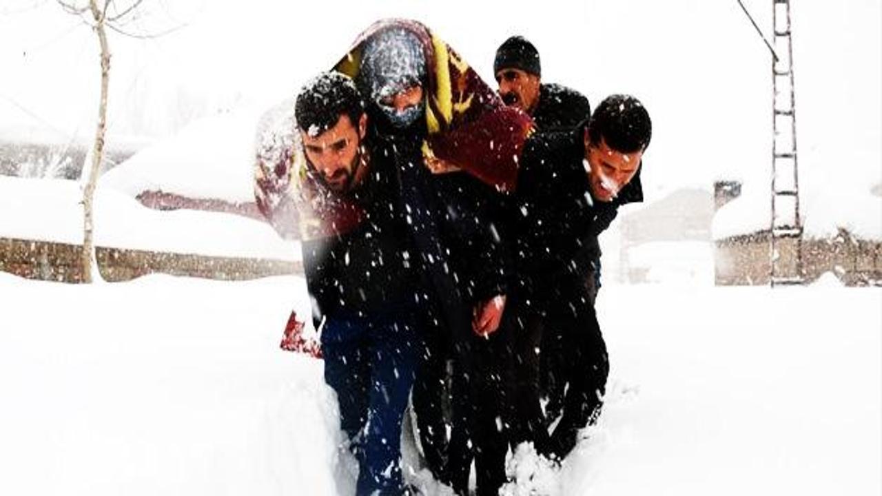 Mahalle sakinleri, düşme sonucu kafasında kanama olan yaşlı kadını, yoğun kar yağışına rağmen ambulansa taşımak için adeta seferber oldu.