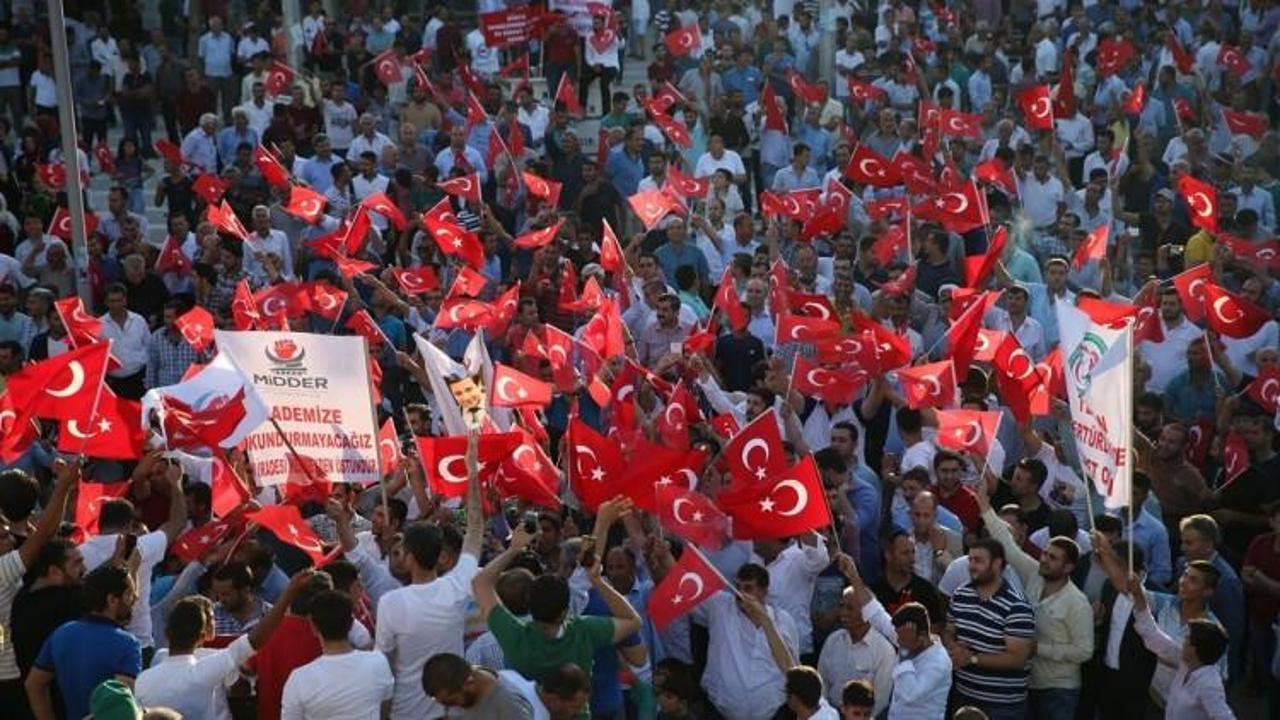 Suruç'ta binlerce kişi ellerinde Türk bayraklarıyla terör örgütü PKK'ya tepki gösterdi.