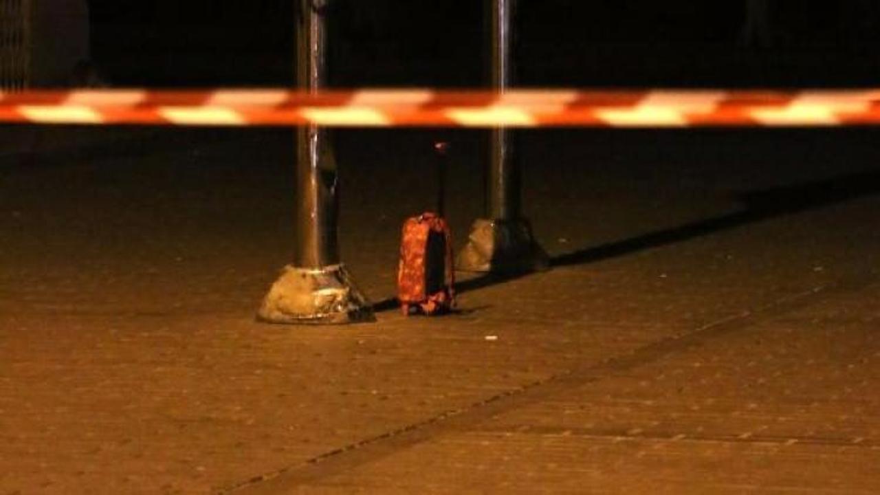 Çantanın içinde patlayıcı madde olabileceğinden şüphelenen güvenlikçiler, alanı şeritle kapattı.