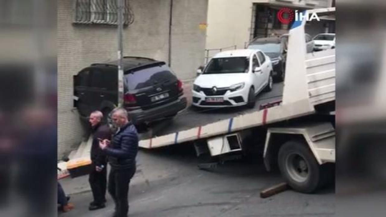 Freninin patlaması sonucunda daireye dalan otomobil çekici yardımıyla olduğu yerden kaldırıldı.