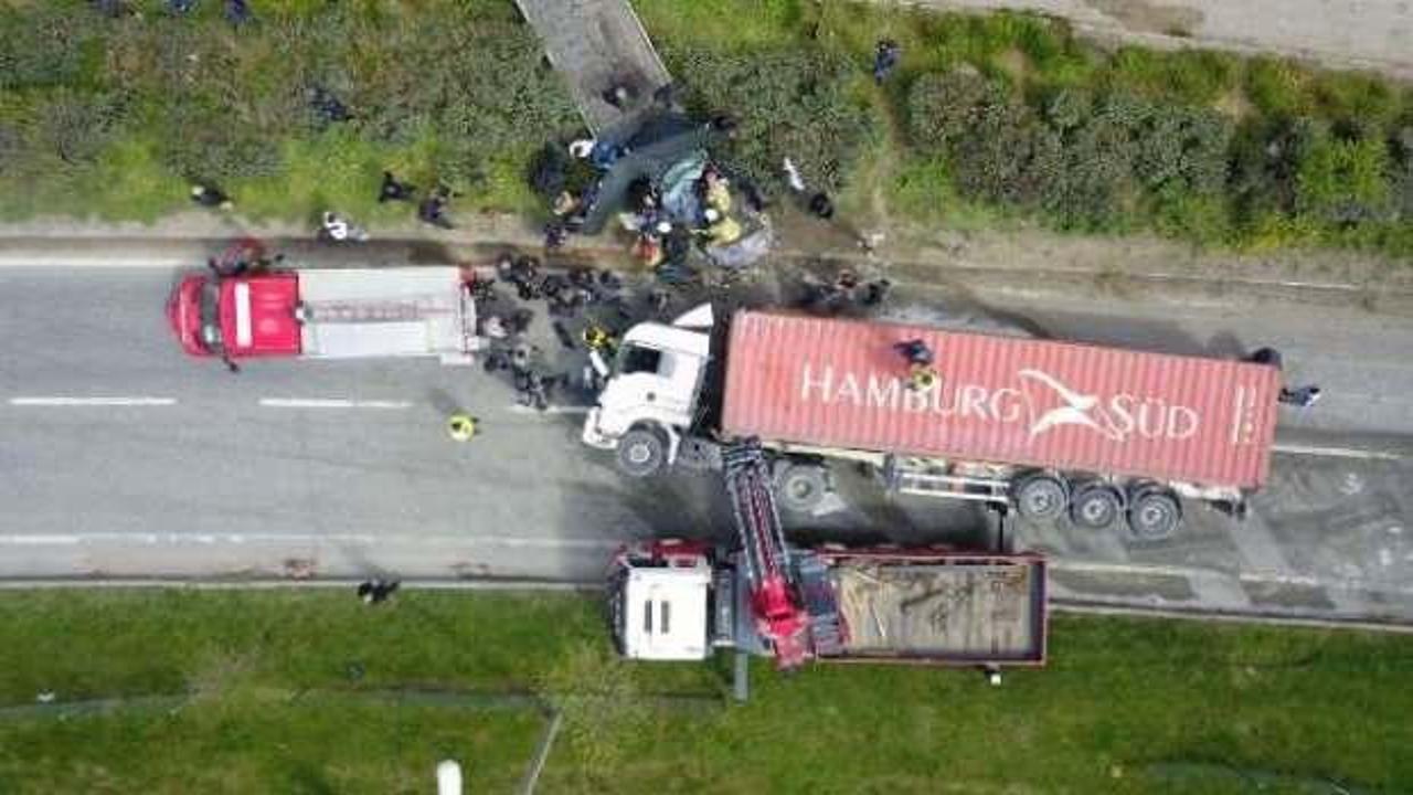 Kaza, saat 13.30 sıralarında, Orhangazi ilçesi Yeniköy kavşağında meydana geldi. Yakup Işık’ın (38) kullandığı 16 AHV 969 plakalı, sunta yüklü TIR, Selahattin Sevimli yönetimindeki 10 SB 690 plakalı otomobilin üzerine devrildi. Seyir halindeki otomobil, kazanın ardından alev aldı. İhbar üzerine bölgeye sağlık, itfaiye ve polis ekipleri sevk edildi. Yangın, itfaiye ekiplerince söndürüldü. Kazada, Yakup Işık ile TIR’da bulunan Sadık Karahasan (57) yaralandı. Yaralılar, sağlık ekiplerince ilk müdahalelerinin ardından ambulanslarla Orhangazi Devlet Hastanesi’ne kaldırılarak, tedaviye alındı. Yaralıların sağlık durumlarının iyi olduğu öğrenildi.