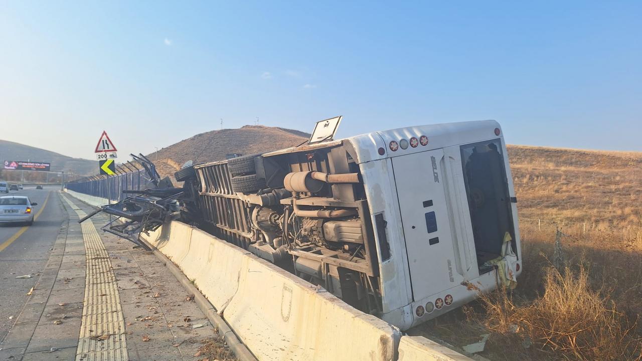 Ankara'da servis otobüsü devrildi: 2 yaralı