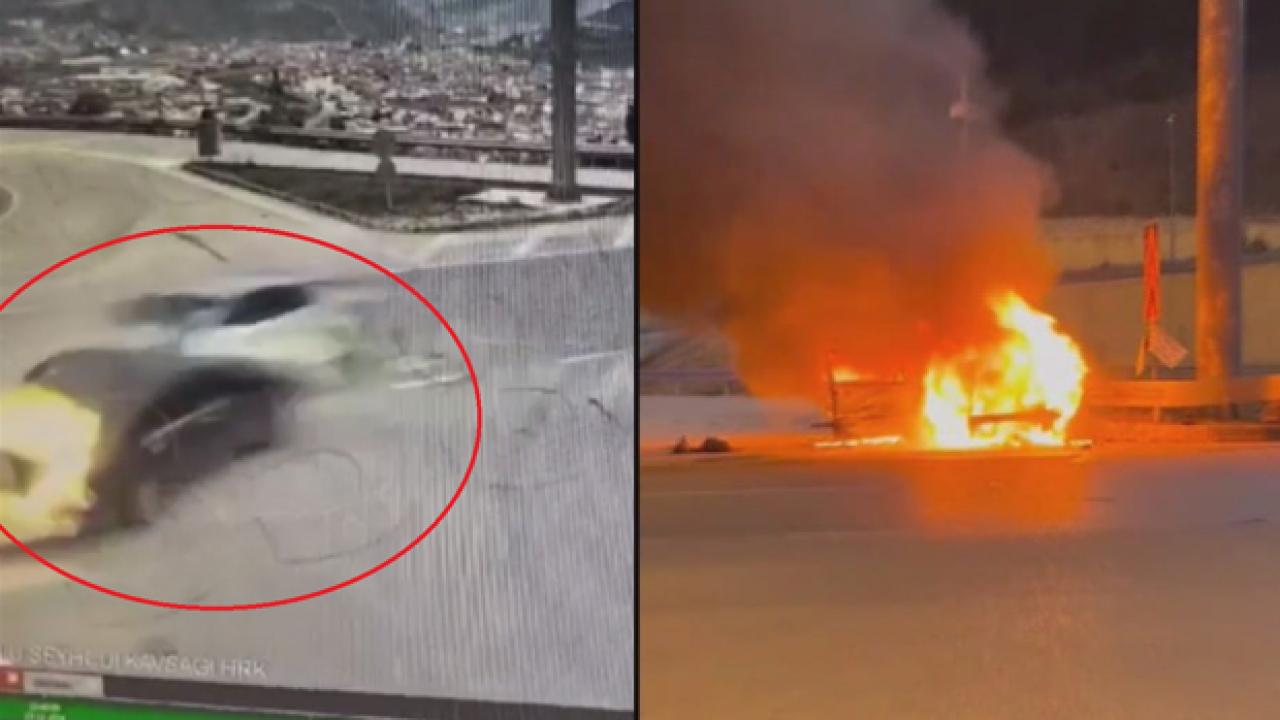 İki otomobil çarpıştı, biri yandı! Feci kaza böyle görüntülendi