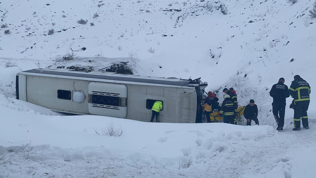 Son dakika kaza haberi: Erzincan'da yolcu otobüsü şarampole devrildi, bölgeye çok sayıda ambulans ve arama kurtarma ekibi sevk edildi.