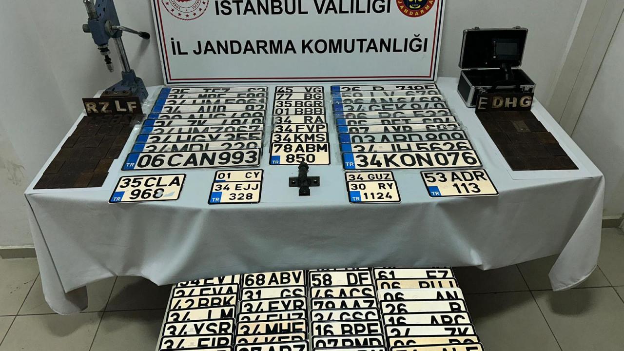 Son dakika haberi... İstanbul İl Jandarma Komutanlığı KOM Şube Müdürlüğü ekipleri ikiz plaka iddiaları üzerine başlatılan soruşturmada değeri 5 milyon TL olan 215 adet sahte araç plakası ele geçirdi.