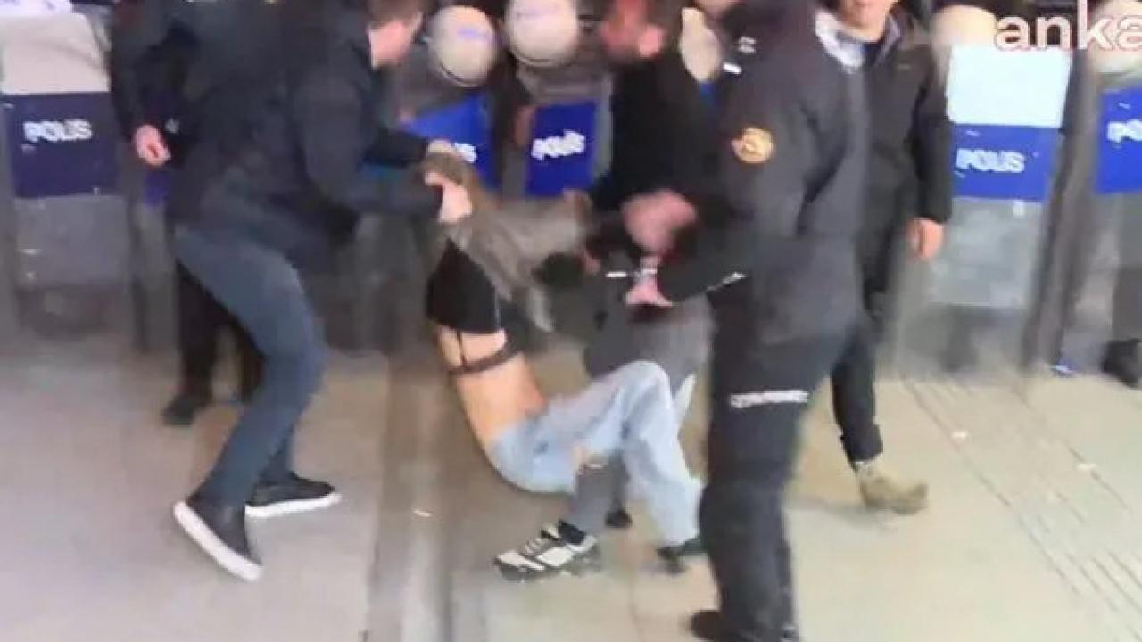 Ankara'da izinsiz yapılan yürüyüşe müdahale eden polis, taşkınlık çıkaranları gözaltına aldı. Gözaltı sırasında 'Sütyeni' görünen kişinin görüntüleri kullanılarak, sosyal medyada 'İşkence Var' provokasyonu boşa çıktı.
