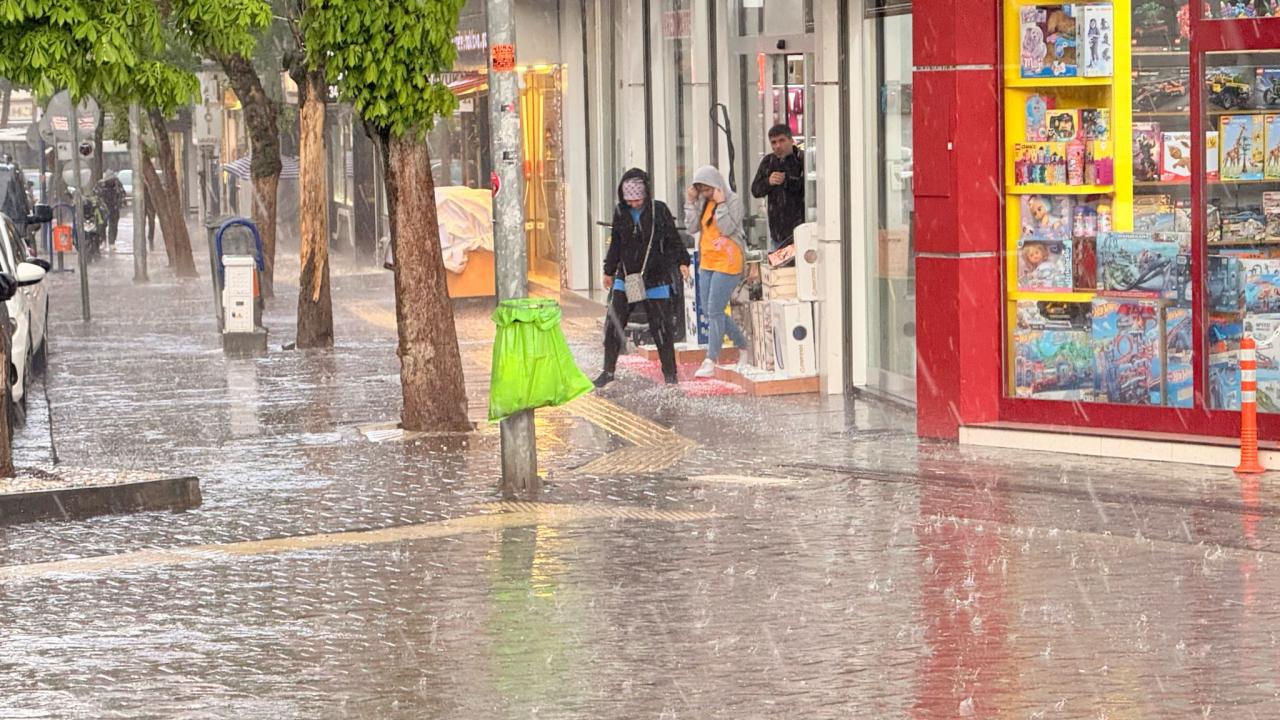 Vatandaşlar ceviz büyüklüğündeki dolu nedeniyle şaşırdı. İlçe merkezinde dolu etkili oldu.