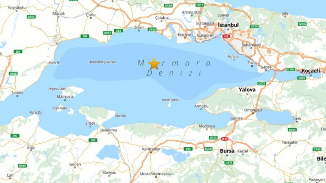 Afet ve Acil Durum Yönetimi Başkanlığının (AFAD) internet sitesinde yer alan bilgiye göre, merkez üssü Marmara Denizi, İstanbul'un Büyükçekmece ilçesi olan 4 büyüklüğünde sarsıntı kaydedildi.