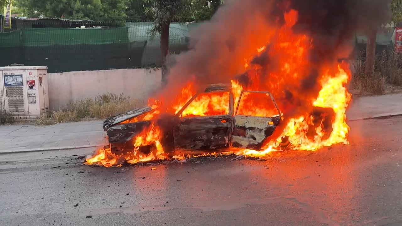 Avcılar'da sürücüsünün çalıştırdığı otomobil, bir anda yanmaya başladı. Otomobilin demir yığınına döndüğü anlar kameralara yansıdı.