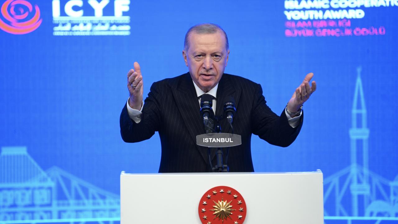 Cumhurbaşkanı Erdoğan, İslam İşbirliği Teşkilatı Gençlik Forumu'nda açıklamalarda bulundu. "Erdoğan'ın Bugün de barış diyoruz, adalet diyoruz. Bugün de yaşasın 'Özgür Filistin' diyoruz." sözleri katılımcılar tarafından ayakta alkışlandı.