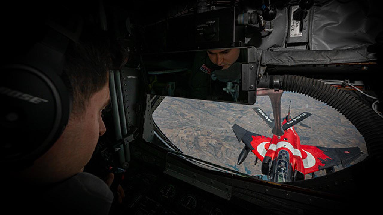 "NATO görevleri için müttefiki olduğumuz ülkelere, belirli bölgelerde kleransımız (yetki) olduğu müddetçe havada yakıt ikmal desteği sağlayabiliyoruz. Aynı zamanda yurt dışı tatbikatları için muharip uçaklarımıza hiç iniş yapmadan varabilmeleri adına yakıt desteği sağlayıp yurt dışı tatbikatlara da bu sayede katılımı gerçekleştirebiliyoruz. Tabii bizler yakıt ikmali esnasında özellikle bulut içi ve türbülanslı havalarda yakıt ikmali operatörleri olarak azami dikkat ve refleks gösteriyoruz. Havada gerçekleşebilecek herhangi bir aksaklık ya da acil durumları da simüle olarak, eğitim olarak çalışıp harbi hazırlık seviyemizde her zaman güncel tutuyoruz."