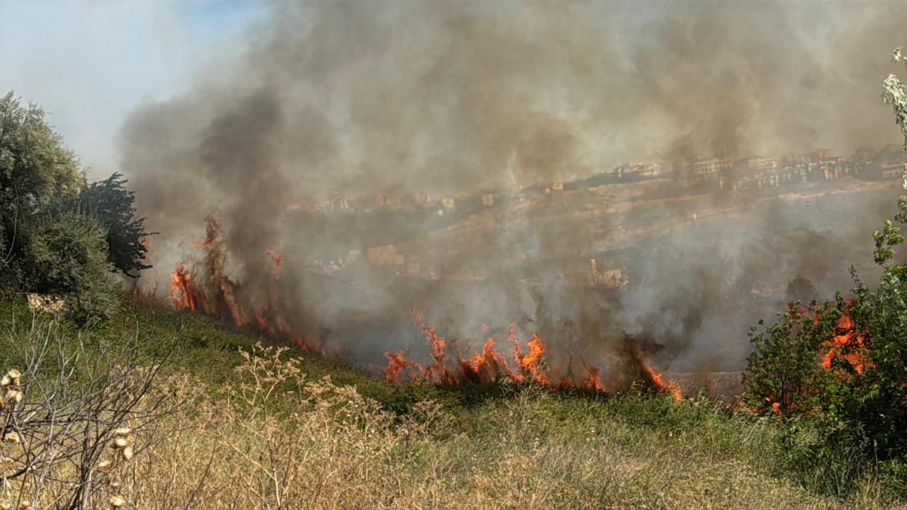 Bölgedeki elektrik hattında yangın nedeniyle zaman zaman patlamalar yaşanıyor.