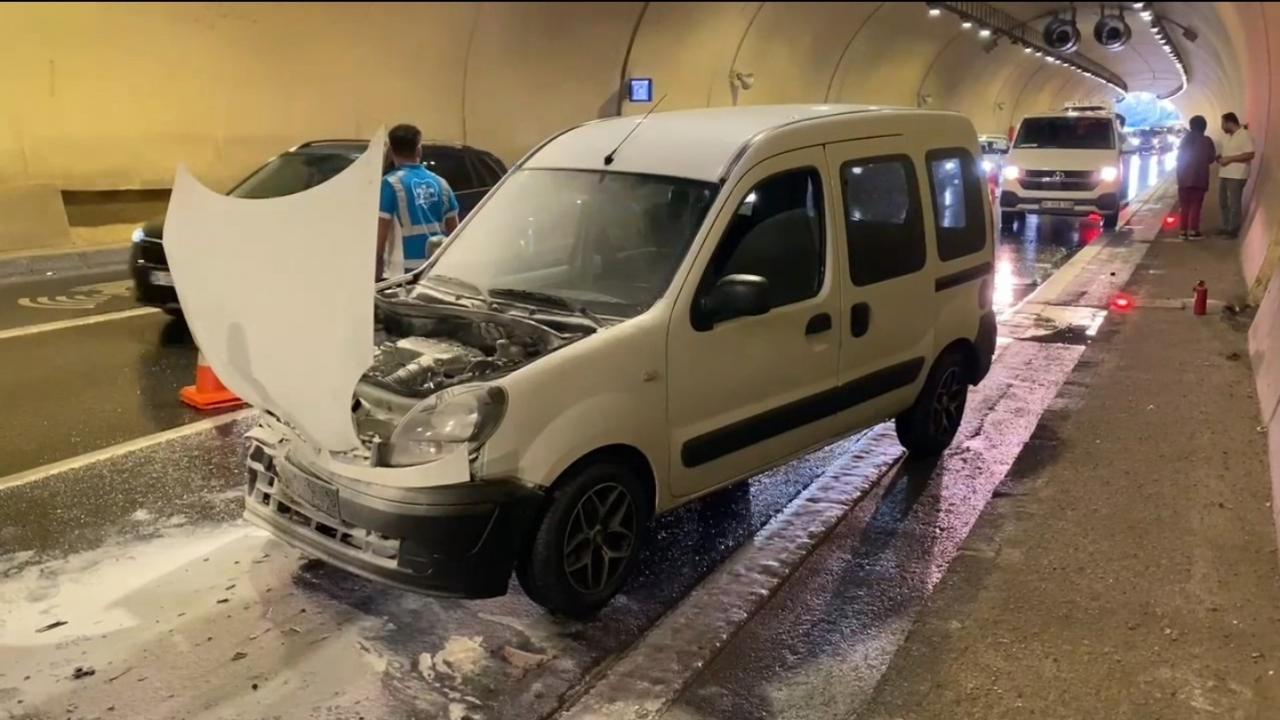 Üsküdar Vecdi Diker Tüneli’nde 4 aracın karıştığı zincirleme kazada bir araç yanarken, bir sürücü hafif şekilde yaralandı.