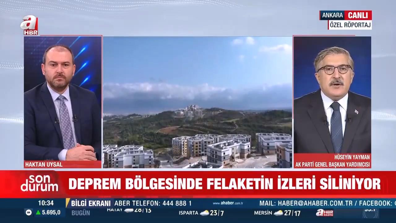 ABONE OLTürkiye Büyük Millet Meclisi Dijital Mecralar Komisyonu ve AK Parti Genel Başkan Yardımcısı Hüseyin Yayman A Haber'e özel açıklamalarda bulundu. Hüseyin Yayman, "Deprem bölgesinde çalışmalar sürüyor. Hatay yeniden ayağa kalkıyor. Bilgi sahibi olmadan fikir sahibi olmaya çalışanlar var. Yıl sonunda bütün temeller atılmış bütün herkes evlerine yerleşmiş olacaklar." dedi.