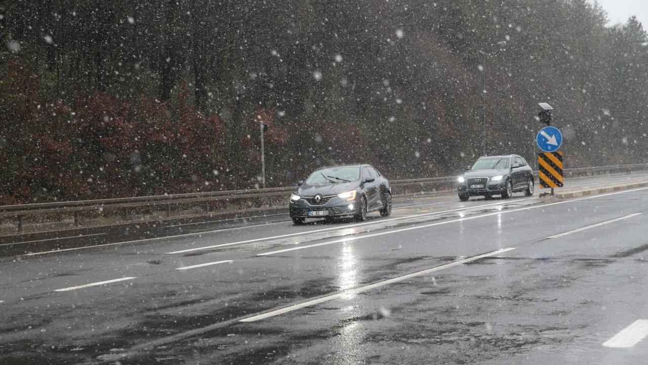 Ankara–İstanbul arasındaki önemli geçiş noktası Bolu Dağı’nda yağmur sabah saatlerinde yerini kar yağışına bıraktı. Mevsimin ilk karının görüldüğü güzergahta ekipler buzlanma riskine karşı önlem aldı.