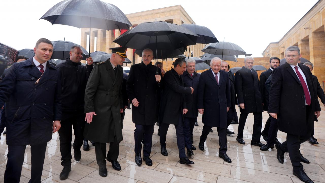 Anıtkabir'de düzenlenen törene Cumhurbaşkanı Yardımcısı Cevdet Yılmaz, CHP Genel Başkanı Özgür Özel ve TBMM Başkanvekili Celal Adan da katıldı.