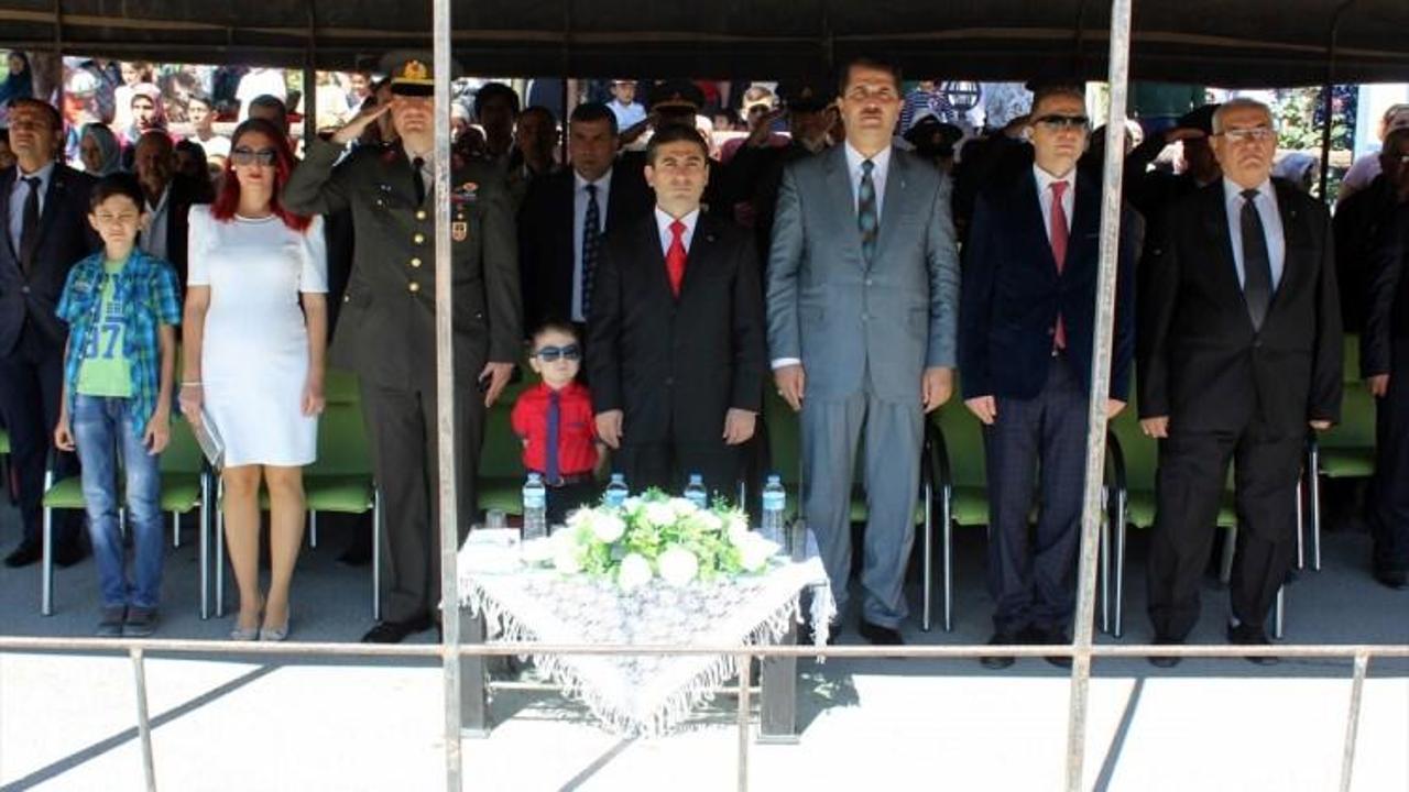 Törende 5 yaşındaki anaokul öğrencisi Behiye Naz Talay'ın İstiklal Marşı'nın on kıtasını ezbere okuması tören alanında bulunanları duygulandırdı.