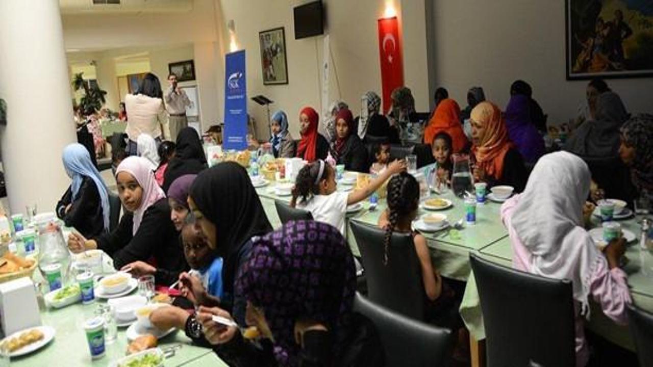İftar öncesi misafirleri kapıda karşılayıp kendileriyle sohbet eden gönüllüler, samimi bir ortamda Somalili aileler ve öğrencilerle birlikte iftar yaptılar.