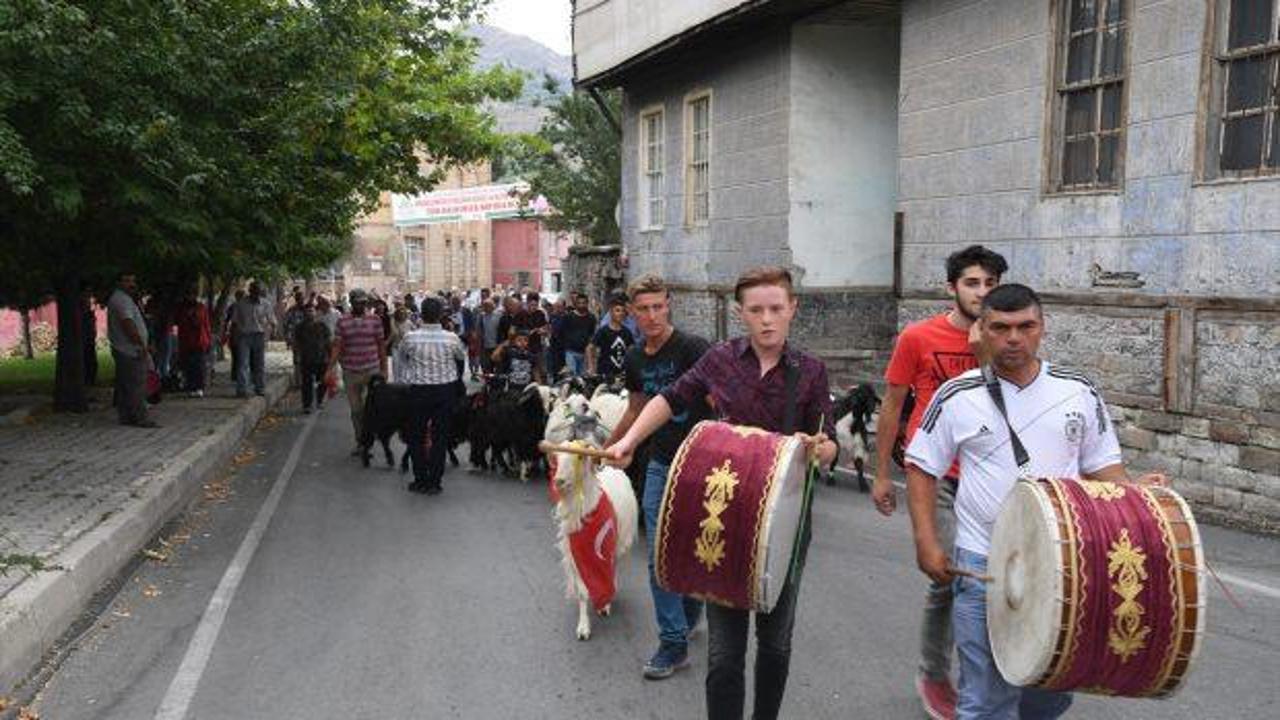 Kurbanlıklar Gökçay mevkisinde davullar eşliğinde araçlardan indirilerek, Doğancı Mahallesi Muhtarlığı önüne getirildi. Burada kesilecek kurbanların kabul olması dileğiyle dua edildi.